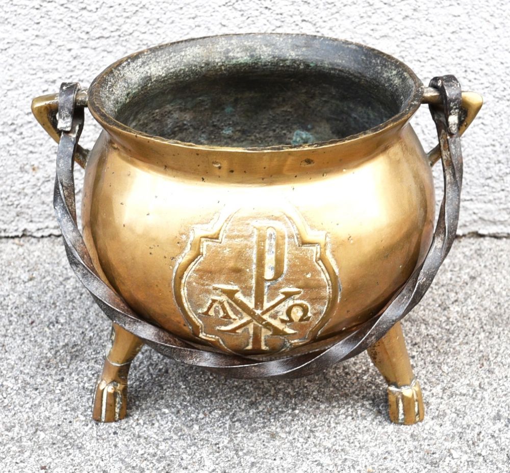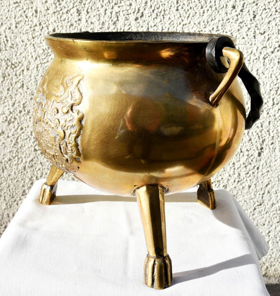 "Sehr alter Glockenspeis-Dreibeinkessel - Grapen aus Bronze"