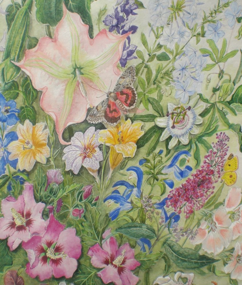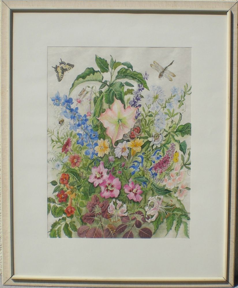 "Mein Garten - Blumenpotpourri mit Schwalbenschwanz und Libelle"