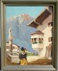 "Trachtige Bäuerin vor dem Bauernhof"