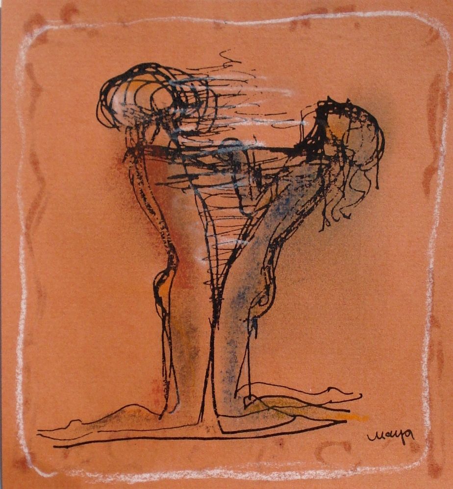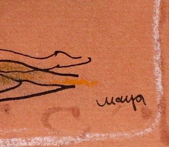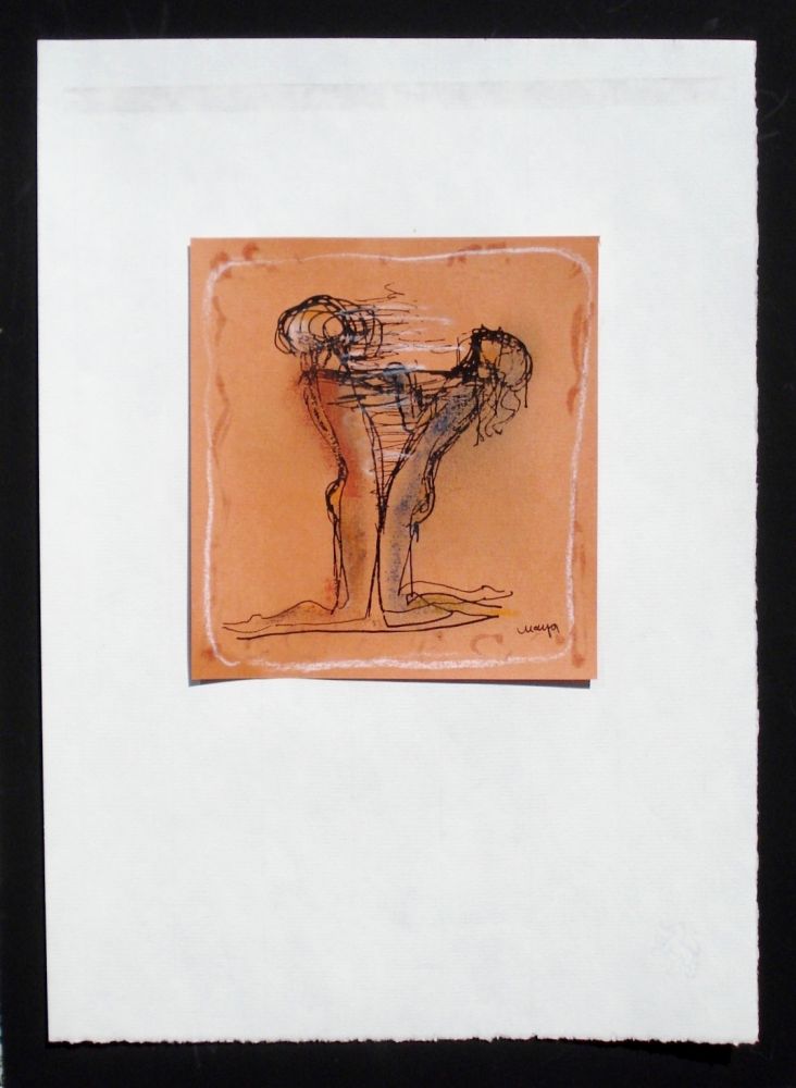 Mischtechnik auf rotes Papier auf Büttenpapier, schwarzer Trägerkarton