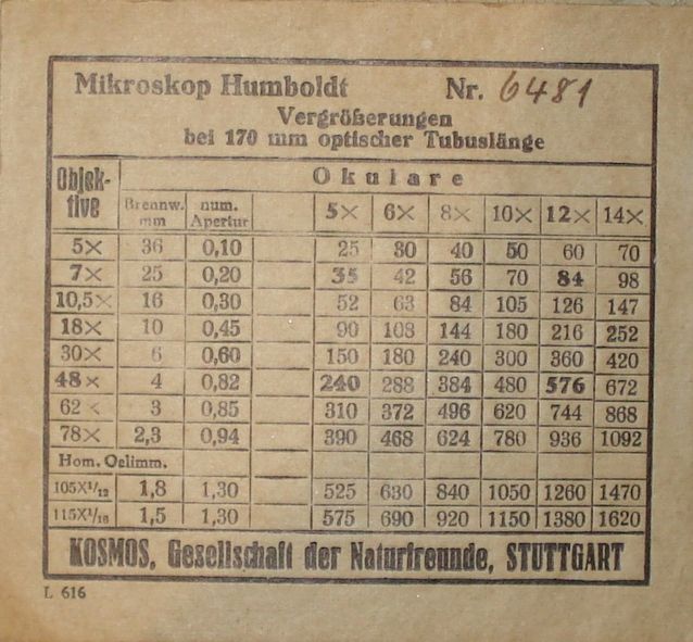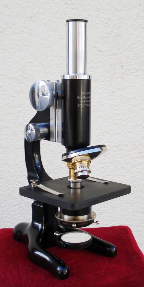 Mikroskop-Aufschrift: KOSMOS Gesellschaft der Naturfreunde Stuttgart