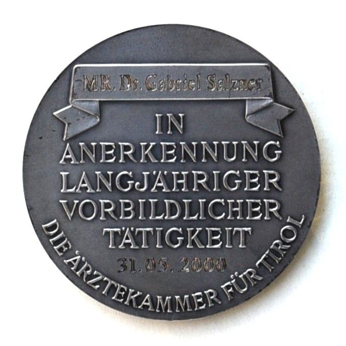 Revers: In Anerkennung langjähriger vorbildlicher Tätigkeit. Die Ärztekammer für Tirol.