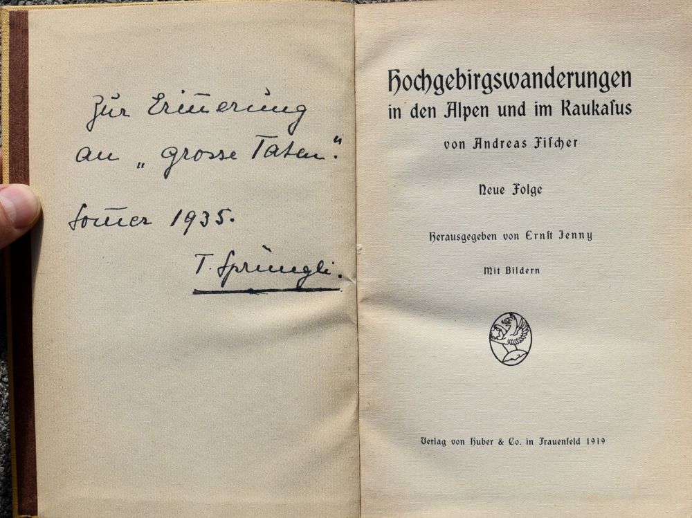 Hochgewirgswanderungen in den Alpen und im Kaukasus von Andreas Fischer. Neue Folge. Herausgegeben von Ernst Jenny, Verlag von Huber & Co. in Frauenfeld 1919.