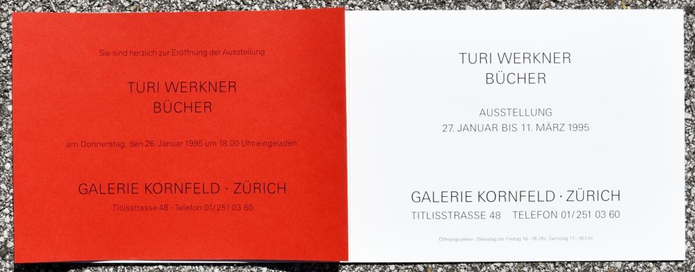 Turi Werkner Bücher, Ausstellung 27. Januar bis 11. März 1995, Galerie Kornfeld - Zürich.