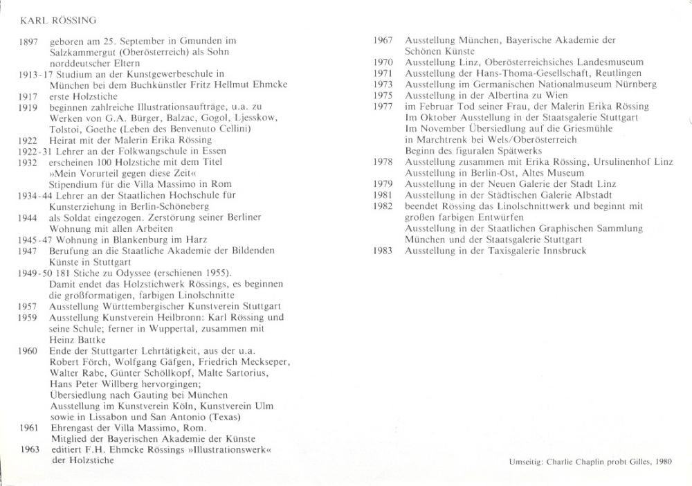 Karl Rössing. Entwürfe Linolschnitte Holzstiche, Galerie im Taxispalais Innsbruck, 22.2. bis 20.3.1983.