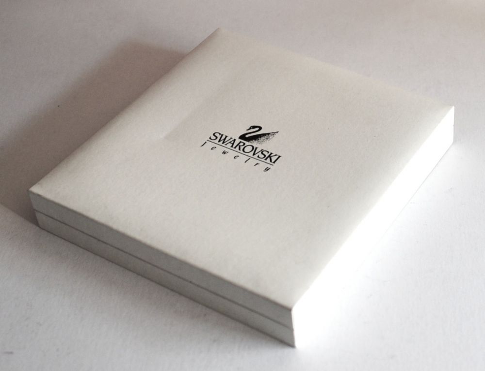 originales Halsband-Etui mit Halsband (Swarovski Necklace), dazu ein Paar Ohrringe (Swarovski Clear Crystal Drop Pendant Earrings) und Damenuhr (Stylus Quartz Ladies Silver Watch)