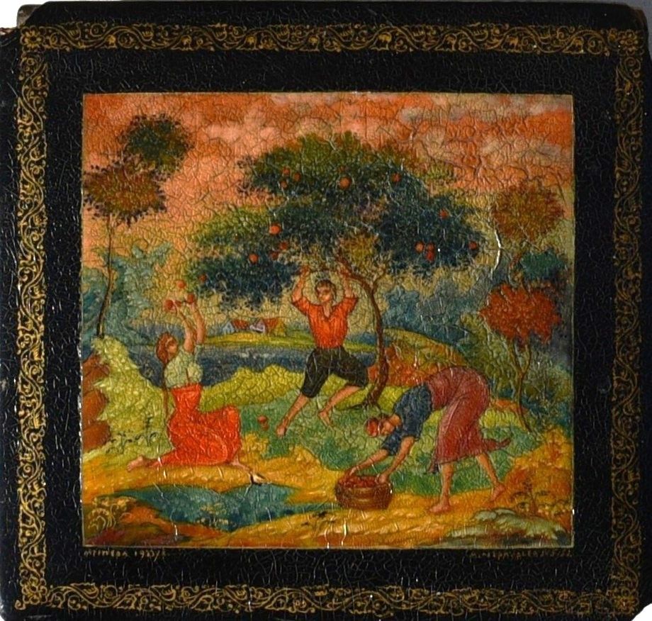 "Russische Lackdose - Apfelernte"
