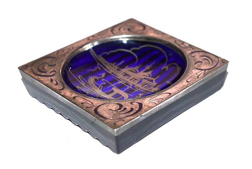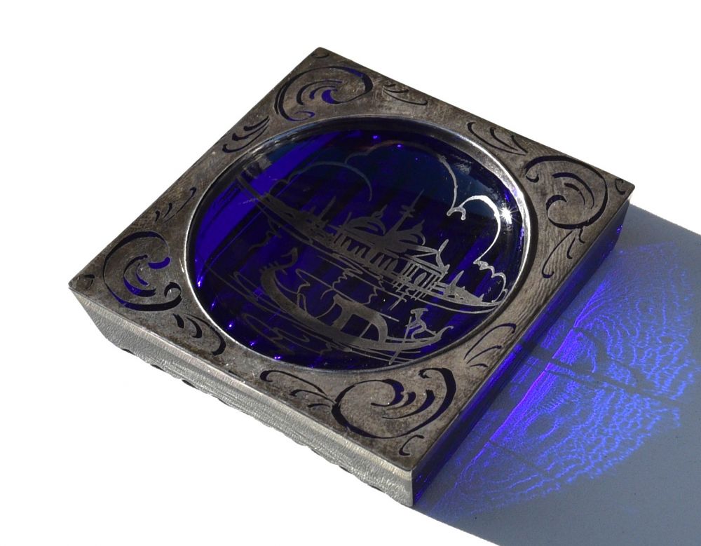 "Kobaltblaue Glasschale mit Silberüberfang"