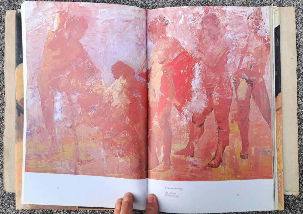 Ausstellungskatalog - Bildband, Hardcover in goldener Leinenbindung, Papierumschlag (leicht beschädigt), 79 nummerierte Seiten, großformatige Farbabbildungen
