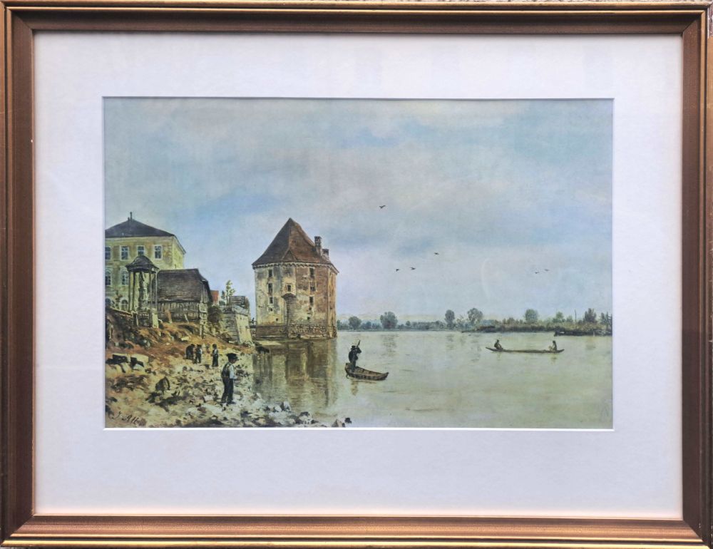 Farbkunstdruck, verglast, zarter Goldrahmen