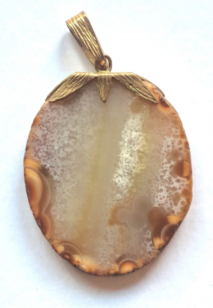 poliertes ovales Achatplättchen, zarte Messingfassung oben