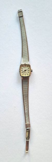 klassische Damen-Armbanduhr, Edelstahl und minimaler Silberanteil, mechanisch, gebraucht, zahlenloses Ziffernblatt, Verschluss intakt, gebraucht