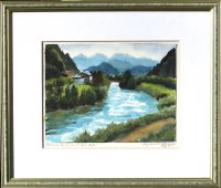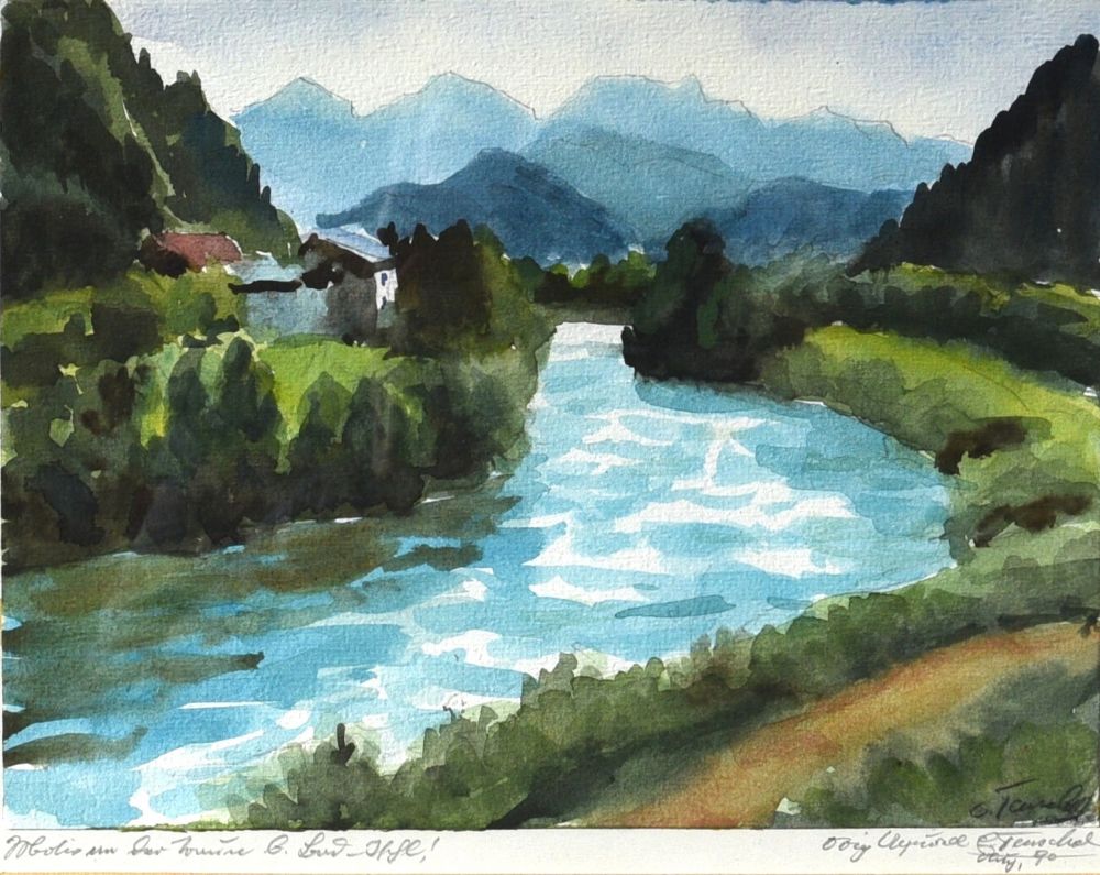 handschriftlich unterhalb links: Motiv an der Traun b. Bad Ischl!