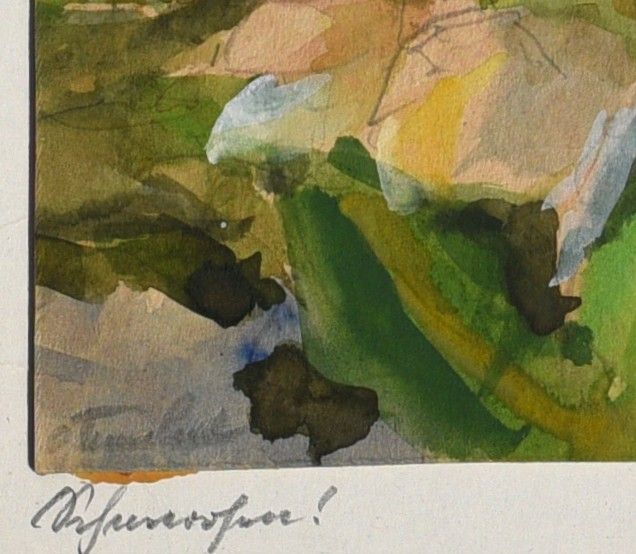 Aquarell (mit Bleistiftkontur) auf dünnem Karton, schöne Neurahmung