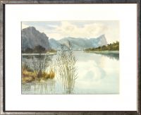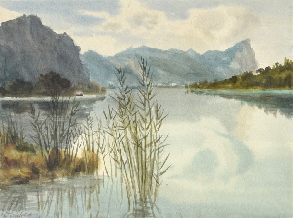 rückseitig handschriftlich: Uferpartie am Mondsee! Orig. Aquarell E. Tenschert
