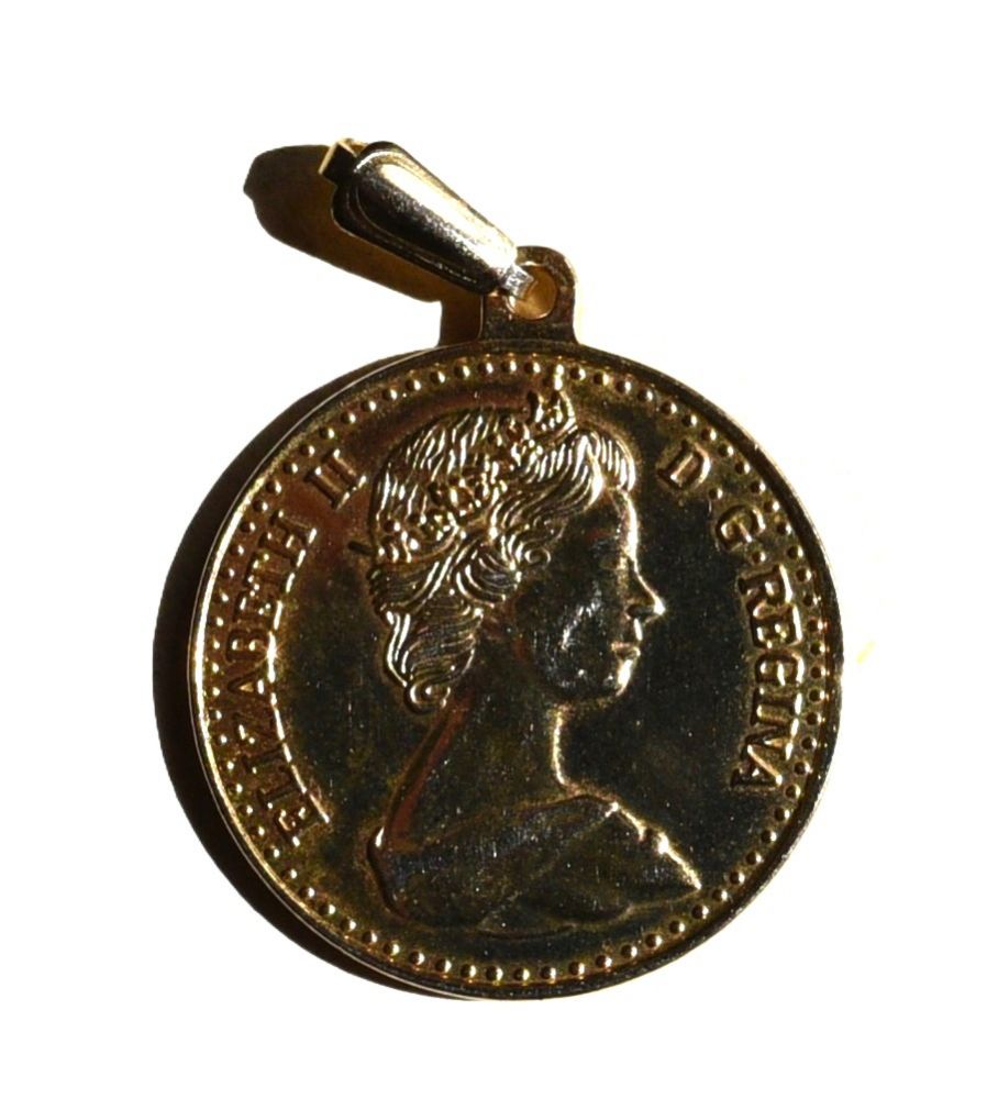 2 Anhänger der Queen Elizabeth II ohne Halskette in Münzoptik, Vintage-Art, silber- und goldfarbene Ausführung