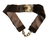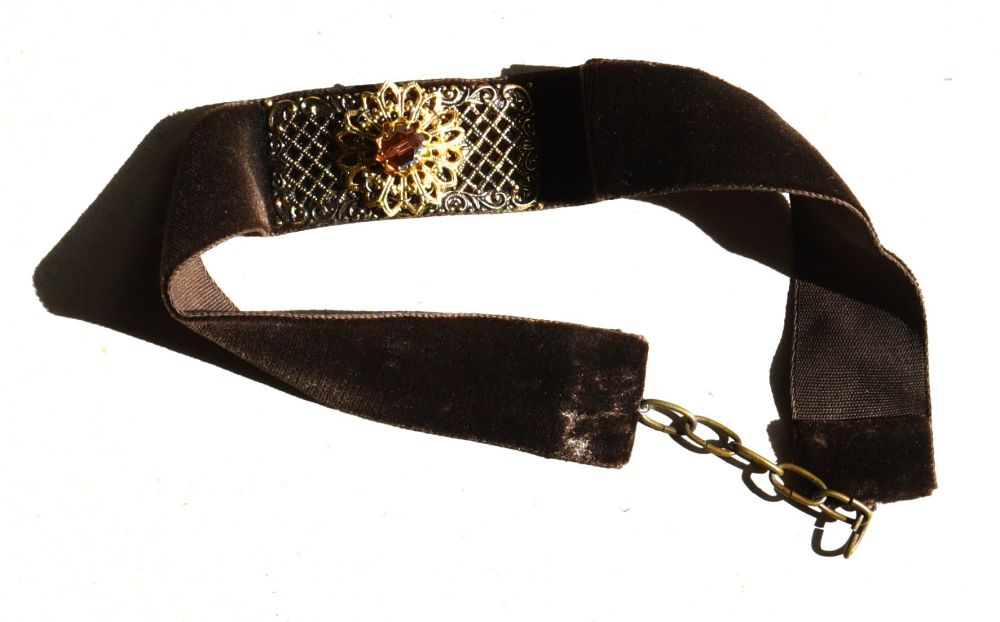 Halsband in braunem Samt, einfacher Verschluss, appliziertes goldfarbenes Filigran-Ornament